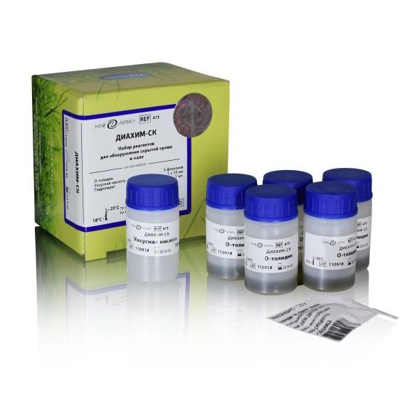 Набор реагентов для обнаружения скрытой крови в кале, предназначен для обнаружения скрытой крови в кале в клинико-диагностических лабораториях