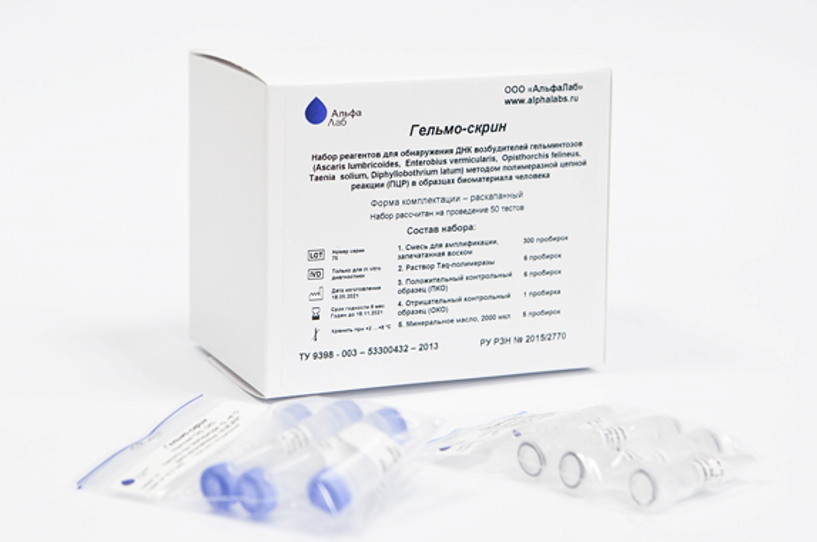 Набор реагентов для обнаружения ДНК возбудителей гельминтозов (Ascaris lumbricoides, Enterobius vermicularis, Opisthorchis felineus, Taenia solium, Diphyllobothrium latum) методом полимеразной цепной реакции (ПЦР) в образцах биоматериала человека