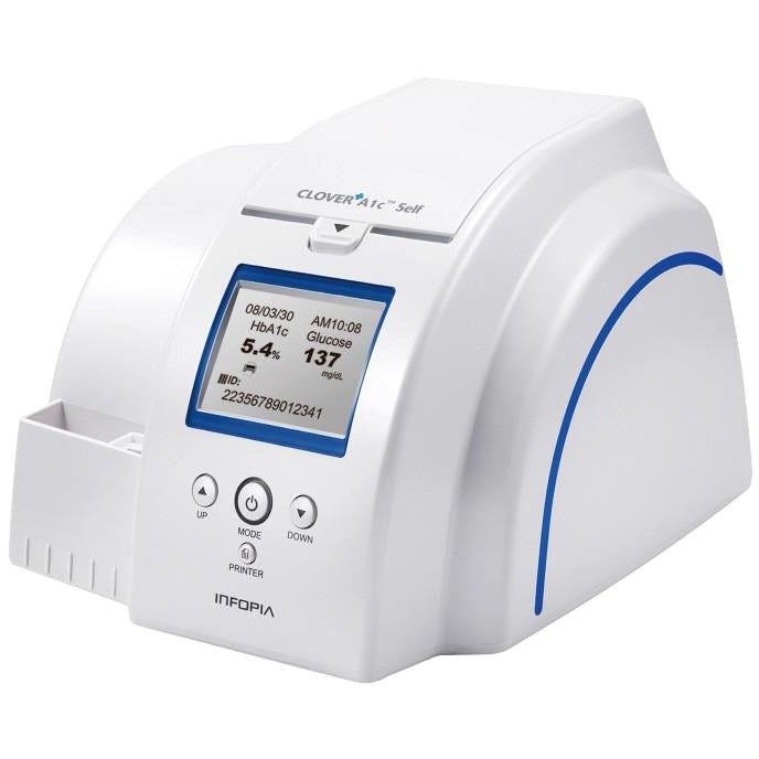 С целью раннего выявления и улучшения контроля эффективности терапии сахарного диабета,компанией Infopia был разработан анализатор CLOVER A1с, который позволяет определять уровень гликированного гемоглобина A1c и глюкозы в цельной крови. Данный аппарат предлагается для профессионального использования в лабораториях медицинских учреждений.