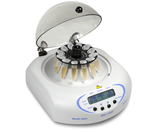 Центрифуга–вортекс MSC-3000 Мультиспин является продуктом многолетней эволюции «Спин–Микс–Спин» технологии, предназначенной для «сброса» микрообъемов реагентов на дно пробирки (первое центрифугирование–спин), последующего перемешивания (микс) и повторного сбора реагентов (повторный спин) со стенок и пробки микропробирок.