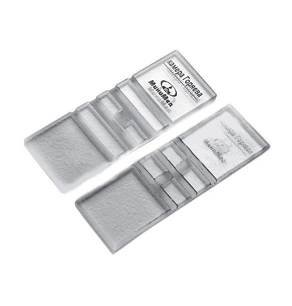 В комплект входят 5 специально полированных покровных стекол, обеспечивающих заданную точность объема камеры. Пластиковый футляр.